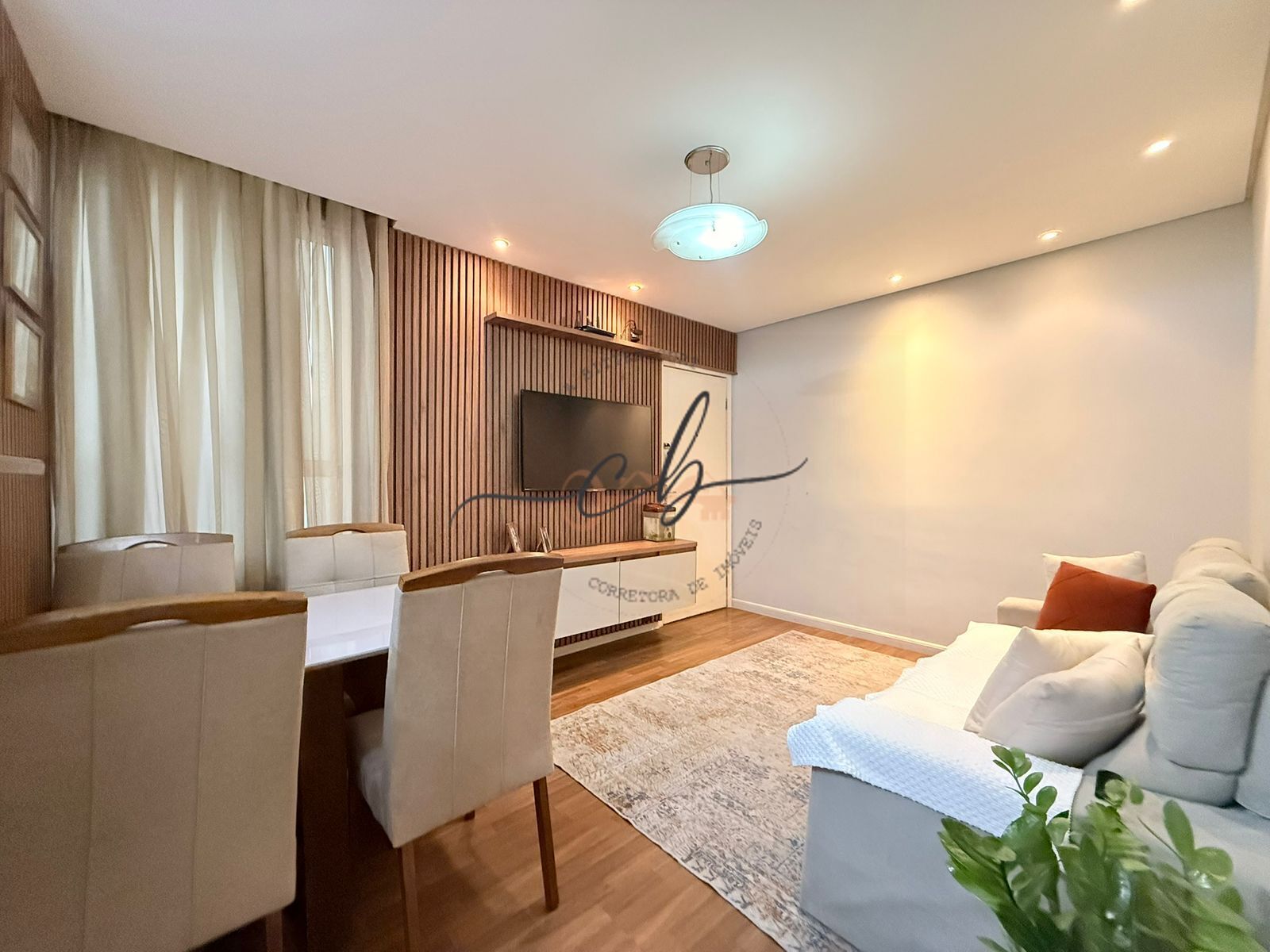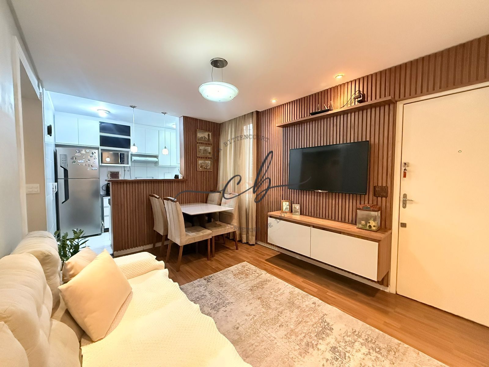 Conta com exaustor, fogão, cortinas, box, espelho, painel no quarto e rack na sala. Além disso, possui teto rebaixado e armários planejados na cozinha, nos 2 quartos e no banheiro, garantindo praticidade e sofisticação no dia a dia.
